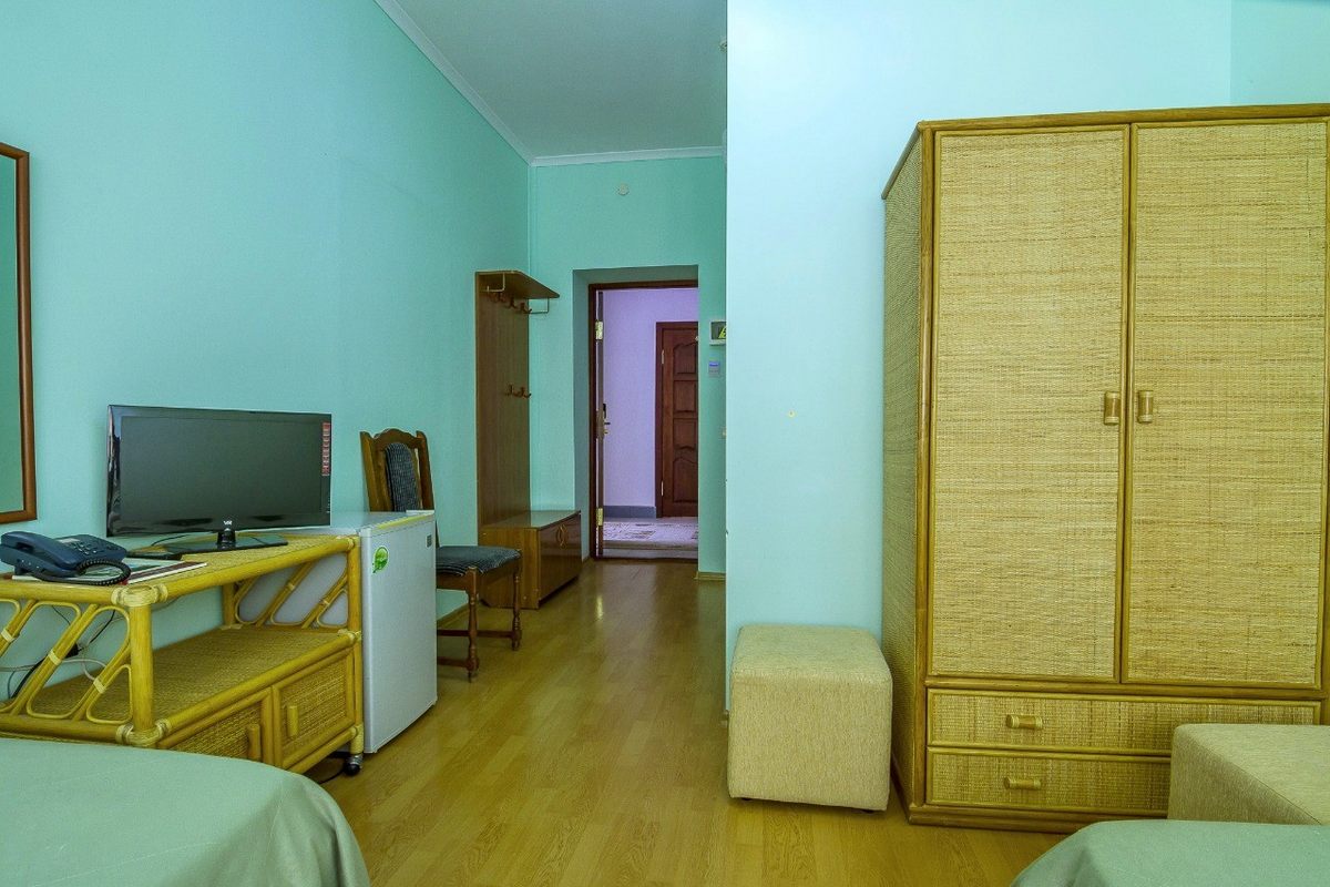В номере: большая двуспальная кровать или две полутороспальных, кондиционер, электронный замок, телефон, телевизор с кабельными каналами, холодильник, письменный стол и стул, багажная тумба, сейф.