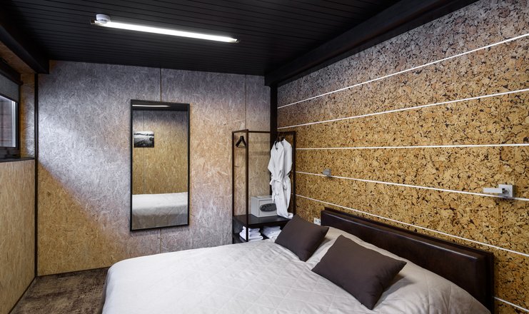 В номере: вешалка, кресло-кровать, кровать двуспальная, обувная полка, прикроватные тумбочки, стулья, Мини-кухня, кофемашина, микроволновая печь, мини-холодильник, сейф, телевизор ЖК, телефон, чайный набор посуды, электрочайник