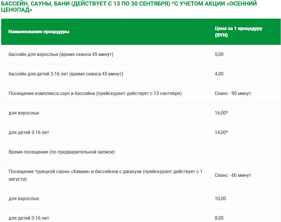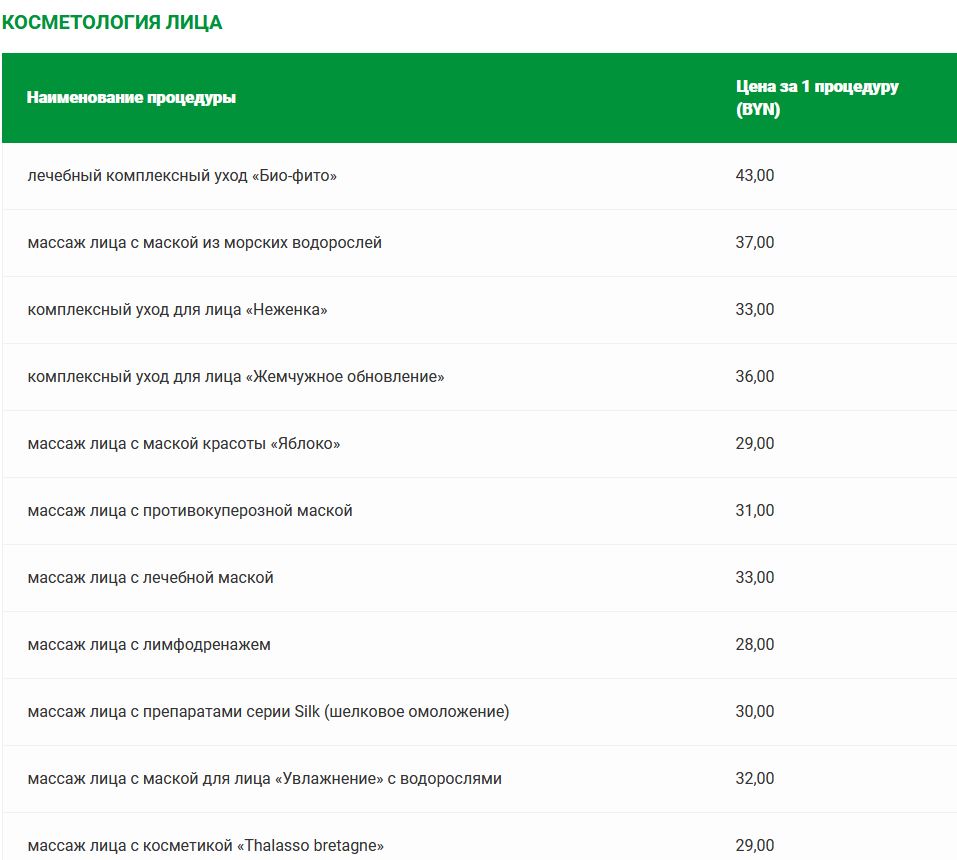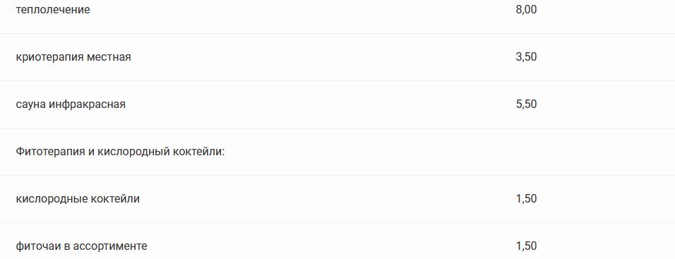 Прейскурант цен на платные медицинские услуги в санатории «Солнечный»